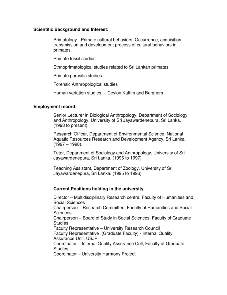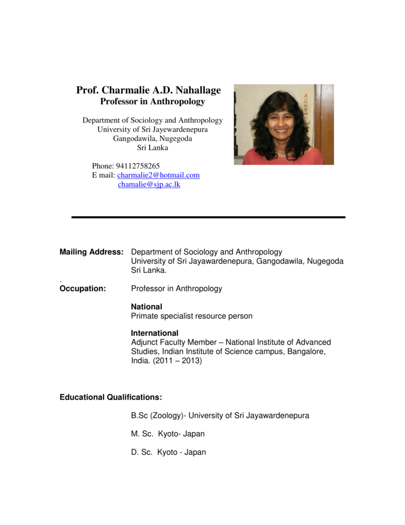 Secretary She is the Secretary of the PSSL and a Professor in Anthropology at the Department of Sociology and Anthropology, University of Sri Jayewardenepura, Sri Lanka