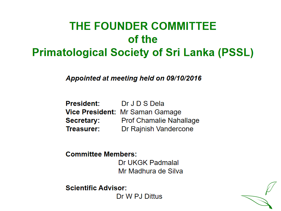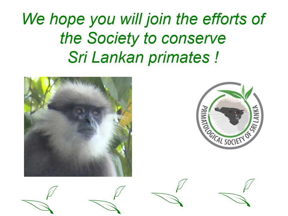 Launched in October 2016 at the conclusion of the Asian Primatological Society meeting held at the Mt Lavinia Hotel, Sri Lanka, the PSSL acts as a forum for professionals working in the primate field and their network of peopl who have a special interest in primates.