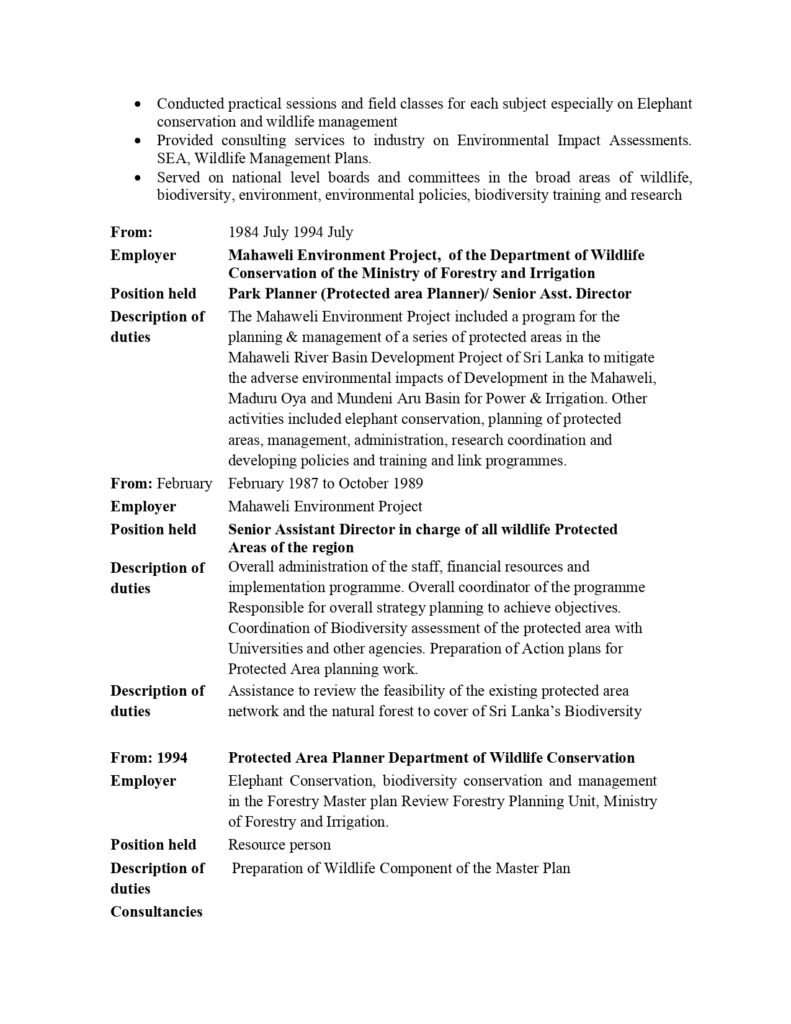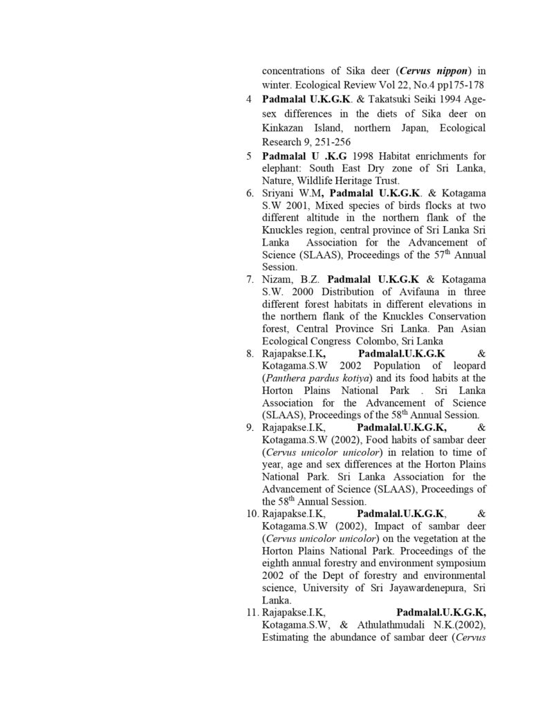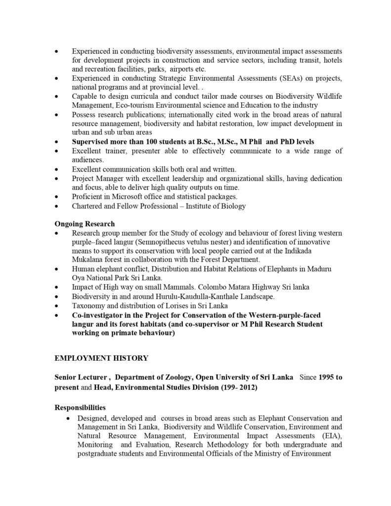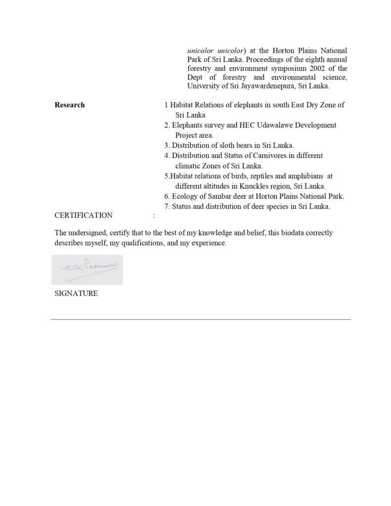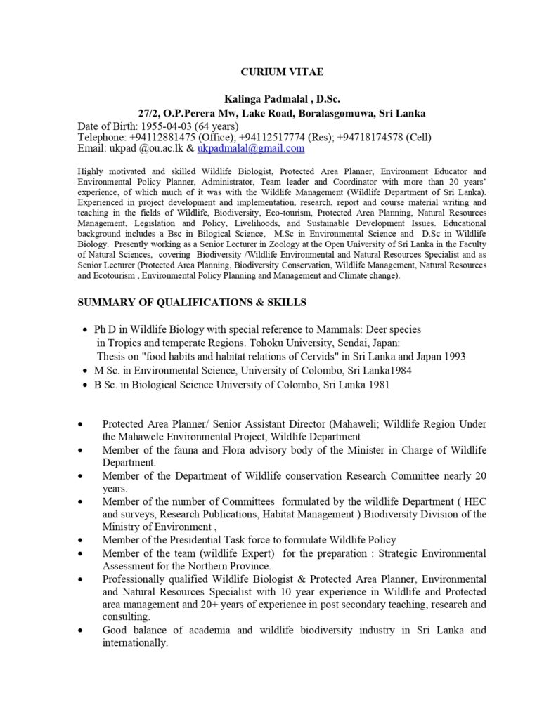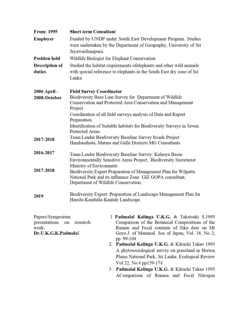 He obtained his B.Sc in Biological Sciences in 1981 and an M.Sc in Environmental Sciences in 1984 from the University of Colombo, and later a D.Sc in Wildlife Biology from the Tohoku University, Japan in 1993. After returning, he worked for the Department of Wildlife Conservation, and was responsible for planning and helping to declare many national parks that are present in the Mahaweli region today. He then worked as faunal expert for the National Conservation Review of forests in Sri Lanka, before joining the Open University of Sri Lanka in 1995 where he worked until his retirement in 2020. He functioned as a Senior Lecturer in Zoology in the Faculty of Natural Sciences with long-years of experience of teaching biodiversity, eco-tourism, Protected Area and Environmental Policy Planning, and Natural Resources Management amongst others. He was a key player in commencing the OUSL post–graduate Diploma in Environmental Studies for officers of the CEA in 2001, which has now evolved into a full-scale post graduate MSc, benefitting many students. He has also supervised research of >100 students at B.Sc. M.Sc and PhD levels at the OU, building up professionals in wildlife and environment for the future. This includes supervising post graduate work on the loris and the western purple-faced langur of Sri Lanka, He now works as a visiting academic and freelance environmental consultant in varied wildlife conservation and management allied field. He is also an advisor to the Ministry of Wildlife and Forest Resource Conservation.